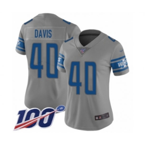 >Women's Detroit Lions #40 Jarrad Davis Limited Gray Inverted Legend 100th Season Football Jersey