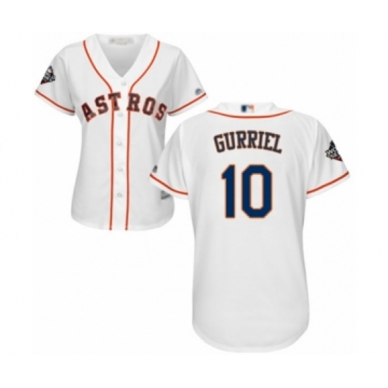 >Women's Houston Astros #10 Yuli Gurriel Authentic White Home Cool Base 2019 World Series Bound Baseball Jersey