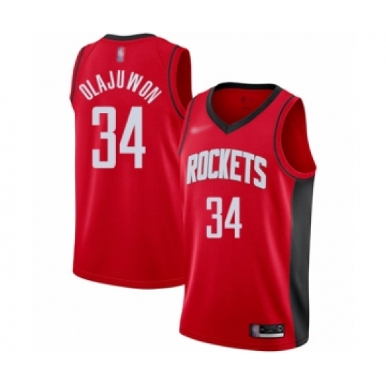 Men's Nike Houston Rockets #34 Hakeem Olajuwon Swingman Red NBA Jersey - 2018 19 City Edition