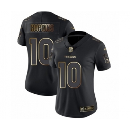 >Women's Houston Texans #10 DeAndre Hopkins Black Gold Vapor Untouchable Limited Football Jersey