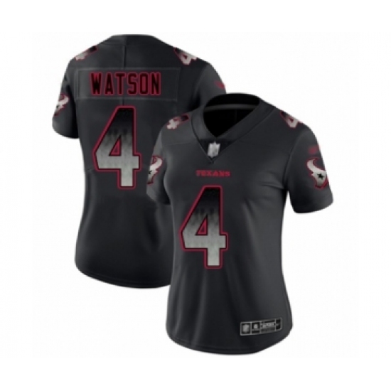 >Women's Houston Texans #4 Deshaun Watson Limited Black Smoke Fashion Football Jersey