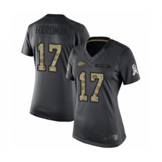 Women's Kansas City Chiefs #17 Mecole Hardman Limited Black 2016 Salute to Service Football Jersey