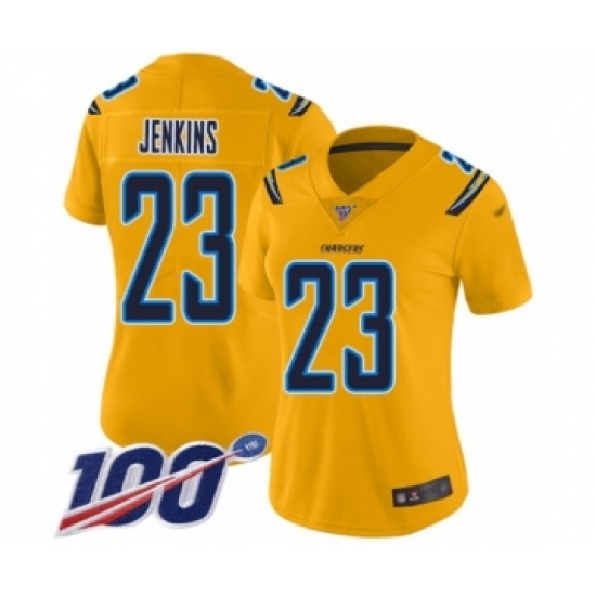 Women's Los Angeles Chargers #23 Rayshawn Jenkins Limited Gold Inverted Legend 100th Season Football Jersey