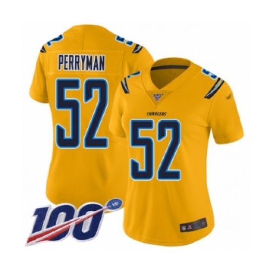 >Women's Los Angeles Chargers #52 Denzel Perryman Limited Gold Inverted Legend 100th Season Football Jersey