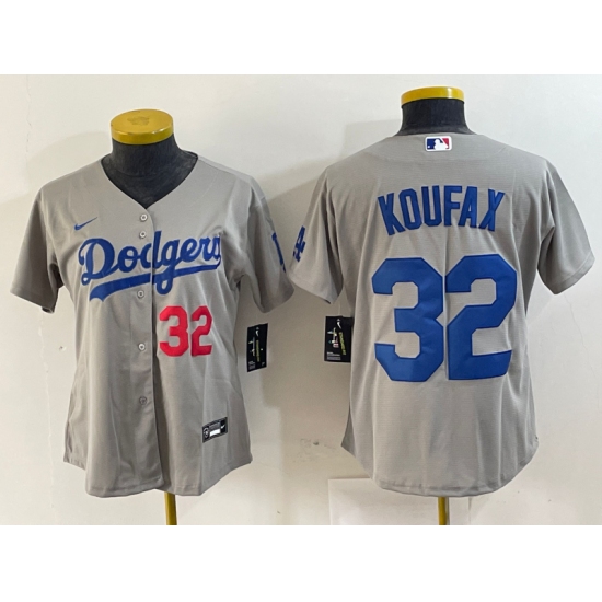 Women's Los Angeles Dodgers #32 Sandy Koufax Number Grey Cool Base Stitched Jerseys