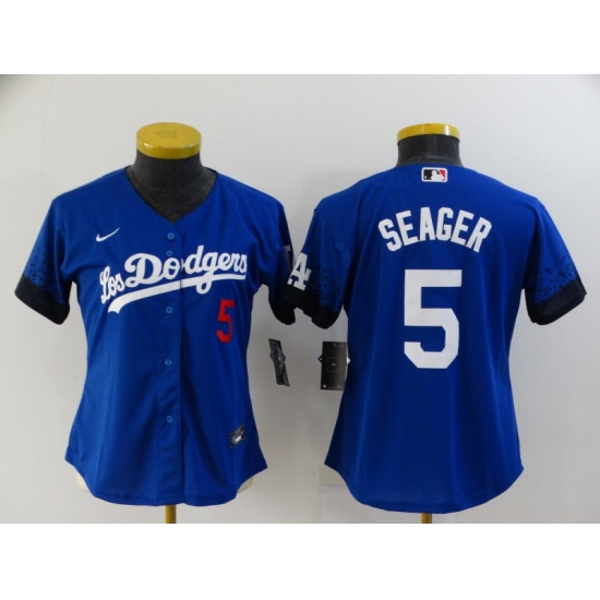 >Women's Los Angeles Dodgers #5 Corey Seager Blue Game City Player Jersey