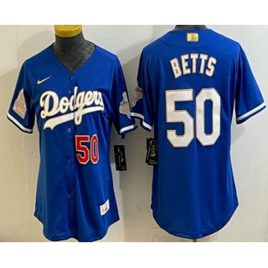 Women's Los Angeles Dodgers #50 Mookie Betts Blue 2026 Gold Collection Stadium Jersey
