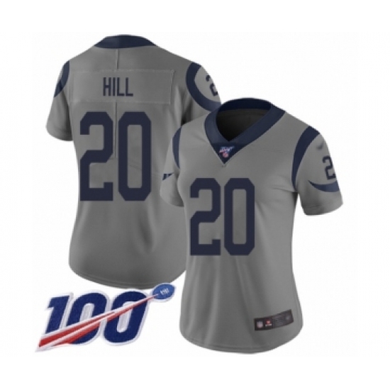 >Women's Los Angeles Rams #20 Troy Hill Limited Gray Inverted Legend 100th Season Football Jersey