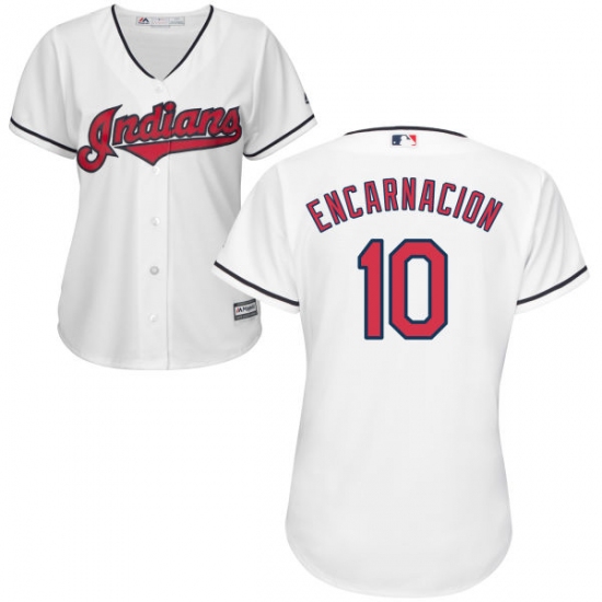 Women's Majestic Cleveland Indians #10 Edwin Encarnacion Authentic White Home Cool Base MLB Jersey