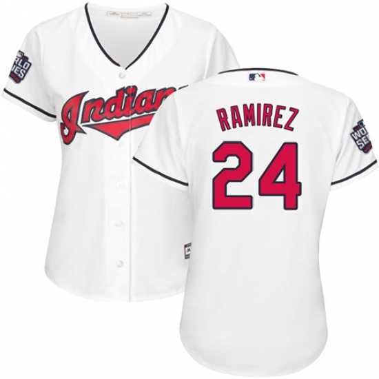 Home>MLB>Cleveland Indians>Manny Ramirez>Women's Majestic Cleveland Indians #24 Manny Ramirez Authentic White Home 2016 World Series Bound Cool Base MLB Jersey