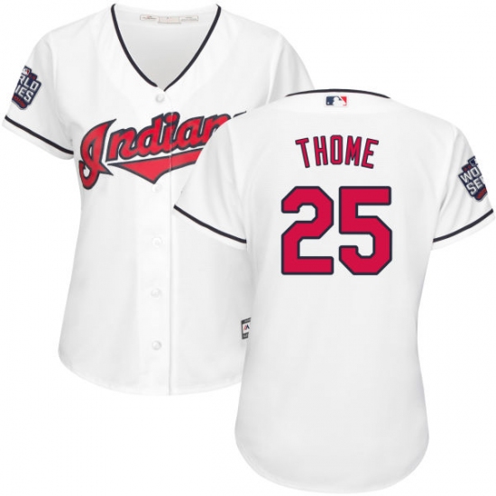 Women's Majestic Cleveland Indians #25 Jim Thome Authentic White Home 2016 World Series Bound Cool Base MLB Jersey