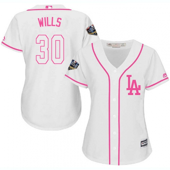Women's Majestic Los Angeles Dodgers #30 Maury Wills Authentic White Fashion Cool Base 2018 World Series MLB Jersey