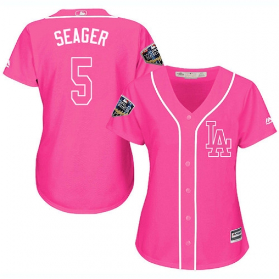 Women's Majestic Los Angeles Dodgers #5 Corey Seager Authentic Pink Fashion Cool Base 2018 World Series MLB Jersey