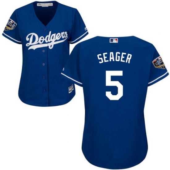 Women's Majestic Los Angeles Dodgers #5 Corey Seager Authentic Royal Blue Alternate Cool Base 2018 World Series MLB Jersey