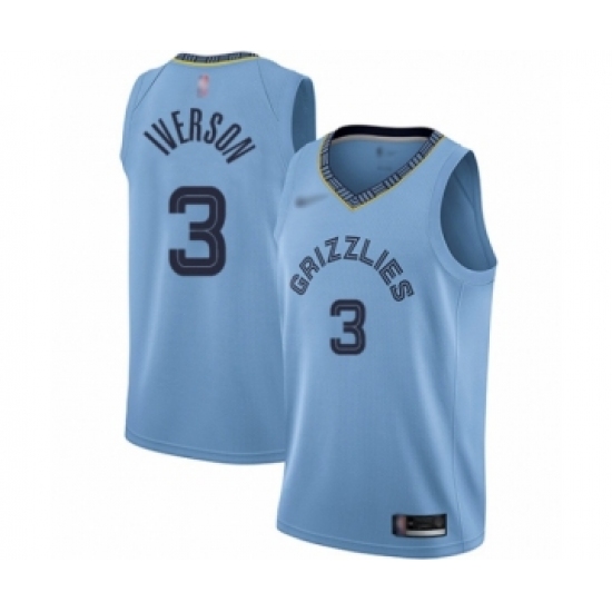 >Women's Memphis Grizzlies #3 Allen Iverson Swingman Blue Finished Basketball Jersey Statement Edition
