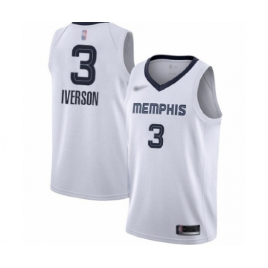 >Women's Memphis Grizzlies #3 Allen Iverson Swingman White Finished Basketball Jersey - Association Edition