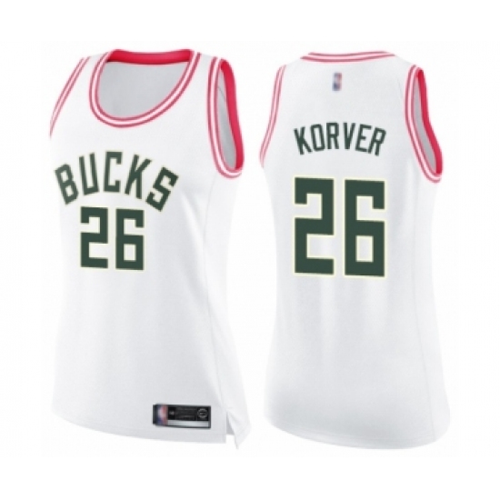 >Women's Milwaukee Bucks #26 Kyle Korver Swingman White Pink Fashion Basketball Jersey