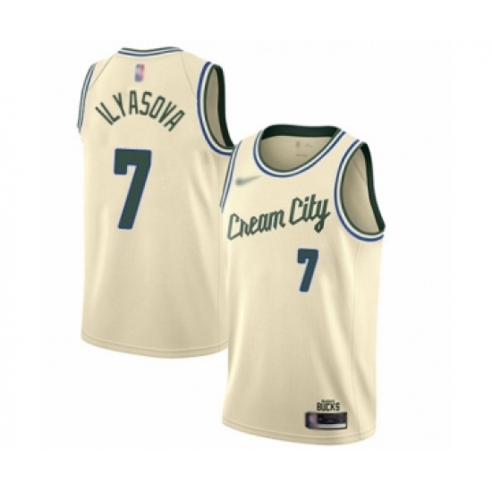 >Women's Milwaukee Bucks #7 Ersan Ilyasova Swingman Cream Basketball Jersey - 2019 20 City Edition