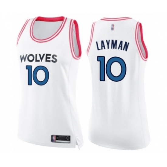 Women's Minnesota Timberwolves #10 Jake Layman Swingman White Pink Fashion Basketball Jersey