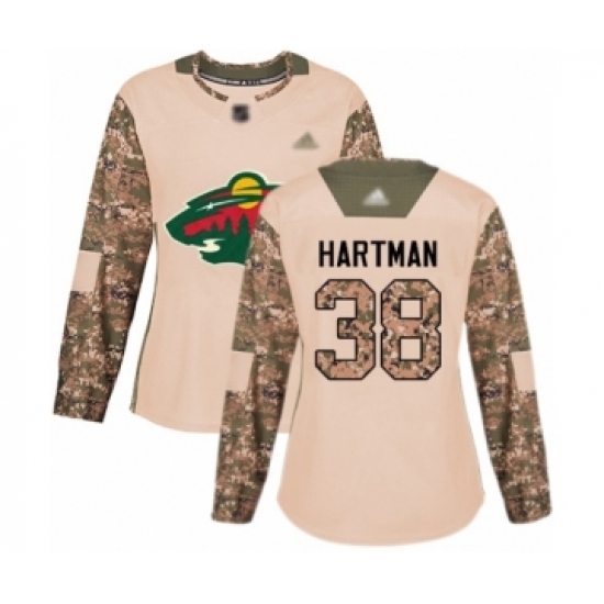 Women's Minnesota Wild #38 Ryan Hartman Authentic Camo Veterans Day Practice Hockey Jersey
