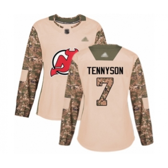 >Women's New Jersey Devils #7 Matt Tennyson Authentic Camo Veterans Day Practice Hockey Jersey