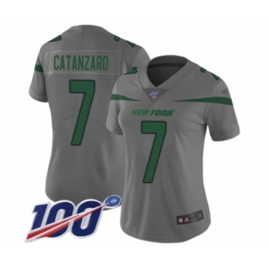 >Women's New York Jets #7 Chandler Catanzaro Limited Gray Inverted Legend 100th Season Football Jersey