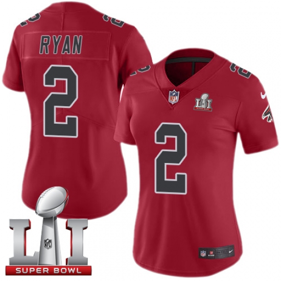 Home>NFL>Atlanta Falcons>Matt Ryan>Women's Nike Atlanta Falcons #2 Matt Ryan Limited Red Rush Super Bowl LI 51 NFL Jersey