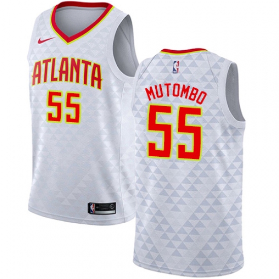 Women's Nike Atlanta Hawks #55 Dikembe Mutombo Swingman White NBA Jersey - Association Edition