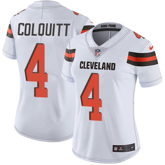 Home>NFL>Cleveland Browns>Britton Colquitt>Women's Nike Cleveland Browns #4 Britton Colquitt White Vapor Untouchable Limited Player NFL Jersey