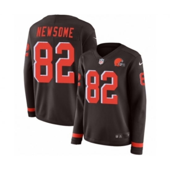 Women's Nike Cleveland Browns #82 Ozzie Newsome Limited Brown Therma Long Sleeve NFL Jersey
