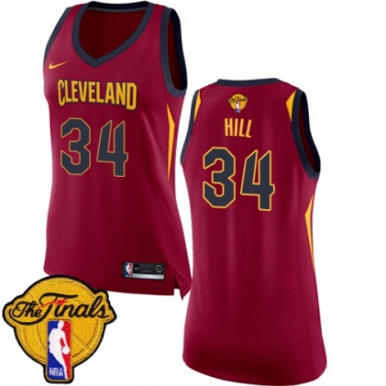 >Women's Nike Cleveland Cavaliers #34 Tyrone Hill Authentic Maroon 2018 NBA Finals Bound NBA Jersey - Icon Edition