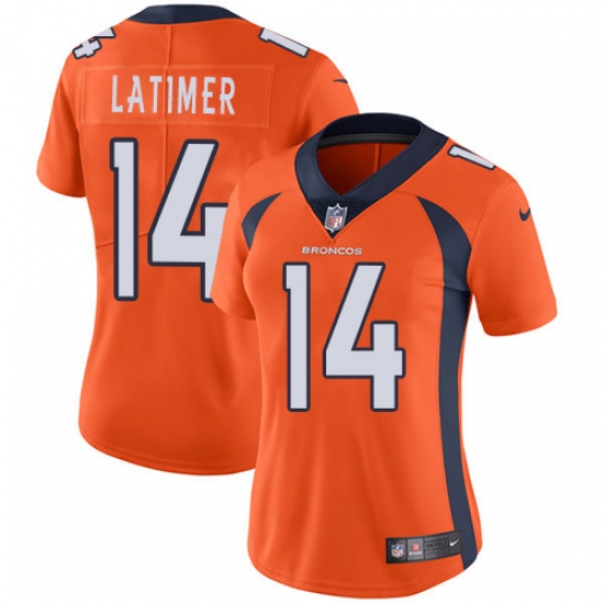Home>NFL>Denver Broncos>Cody Latimer>Women's Nike Denver Broncos #14 Cody Latimer Orange Team Color Vapor Untouchable Limited Player NFL Jersey