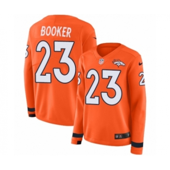 Women's Nike Denver Broncos #23 Devontae Booker Limited Orange Therma Long Sleeve NFL Jersey