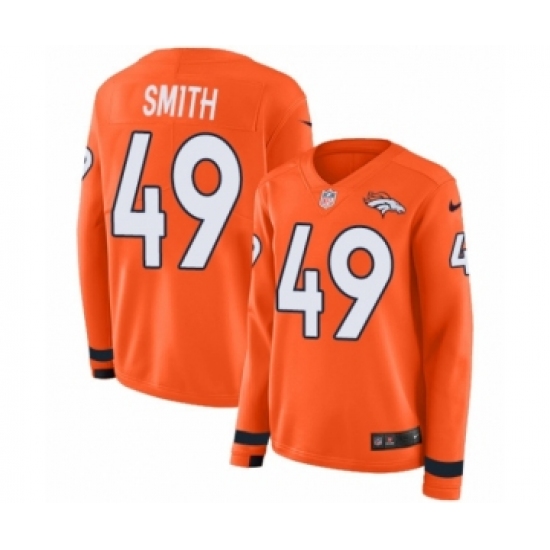 >Women's Nike Denver Broncos #49 Dennis Smith Limited Orange Therma Long Sleeve NFL Jersey