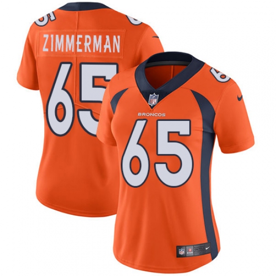 Home>NFL>Denver Broncos>Gary Zimmerman>Women's Nike Denver Broncos #65 Gary Zimmerman Orange Team Color Vapor Untouchable Limited Player NFL Jersey