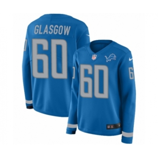 >Women's Nike Detroit Lions #60 Graham Glasgow Limited Blue Therma Long Sleeve NFL Jersey