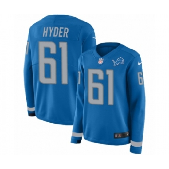 >Women's Nike Detroit Lions #61 Kerry Hyder Limited Blue Therma Long Sleeve NFL Jersey