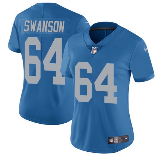Women's Nike Detroit Lions #64 Travis Swanson Elite Blue Alternate NFL Jersey