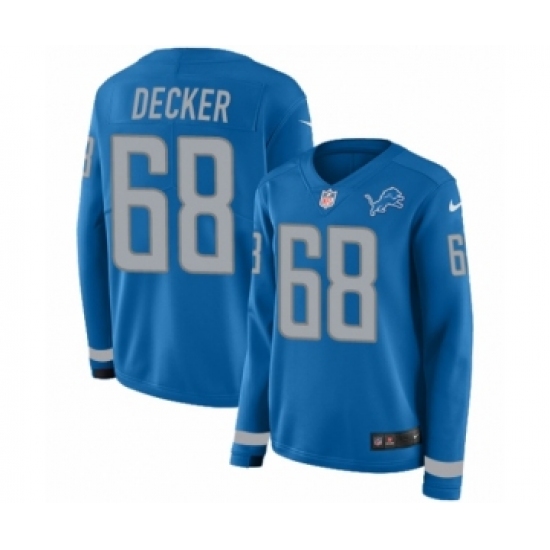 Women's Nike Detroit Lions #76 T.J. Lang Limited Blue Therma Long Sleeve NFL Jersey