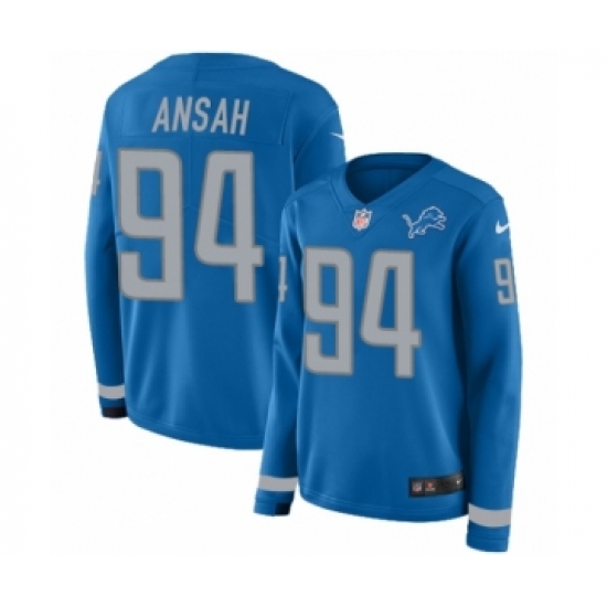 Women's Nike Detroit Lions #94 Ziggy Ansah Limited Blue Therma Long Sleeve NFL Jersey