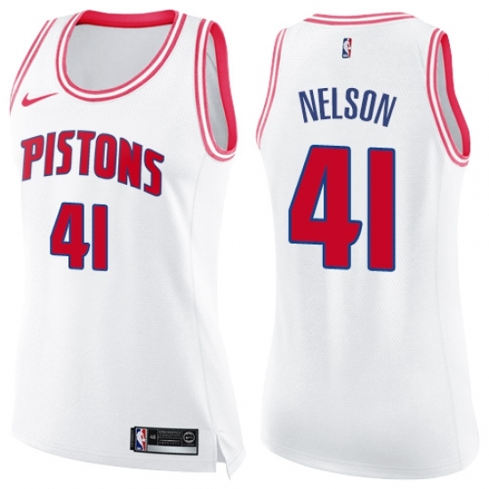 Women's Nike Detroit Pistons #41 Jameer Nelson Swingman White Pink Fashion NBA Jersey