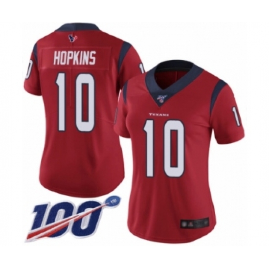 Women's Nike Houston Texans #10 DeAndre Hopkins Red Alternate Vapor Untouchable Limited Player 100th Season NFL Jersey