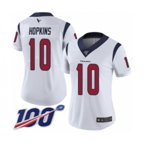 Women's Nike Houston Texans #10 DeAndre Hopkins White Vapor Untouchable Limited Player 100th Season NFL Jersey