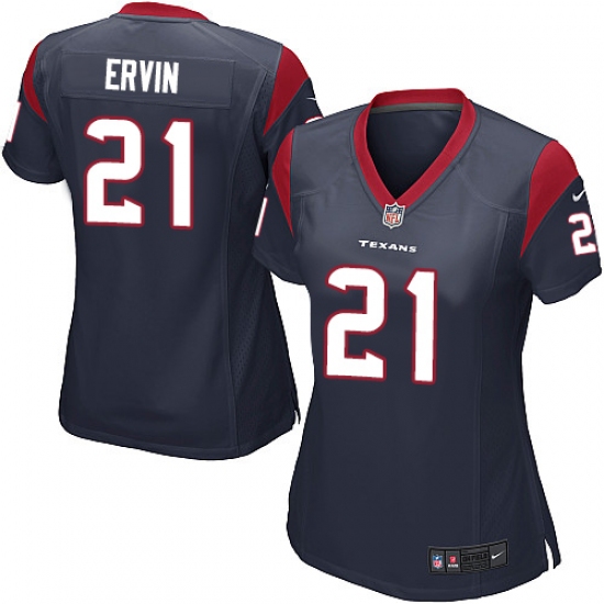 Women's Nike Houston Texans #21 Tyler Ervin Game Navy Blue Team Color NFL Jersey
