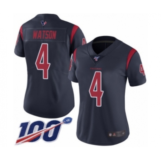 Women's Nike Houston Texans #4 Deshaun Watson Limited Navy Blue Rush Vapor Untouchable 100th Season NFL Jersey