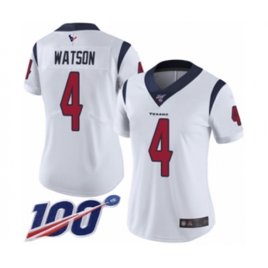 >Women's Nike Houston Texans #4 Deshaun Watson White Vapor Untouchable Limited Player 100th Season NFL Jersey