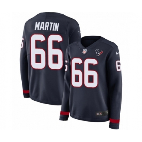 >Women's Nike Houston Texans #66 Nick Martin Limited Navy Blue Therma Long Sleeve NFL Jersey