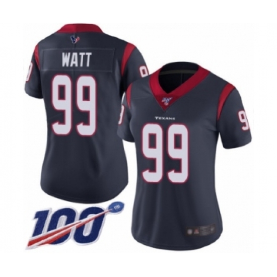 >Women's Nike Houston Texans #99 J.J. Watt Navy Blue Team Color Vapor Untouchable Limited Player 100th Season NFL Jersey