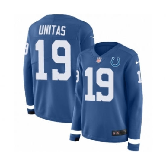 Women's Nike Indianapolis Colts #19 Johnny Unitas Limited Blue Therma Long Sleeve NFL Jersey