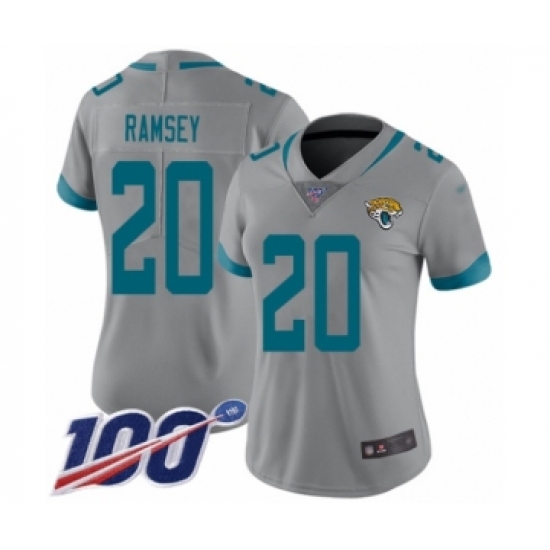 Women's Nike Jacksonville Jaguars #20 Jalen Ramsey Silver Inverted Legend Limited 100th Season NFL Jersey